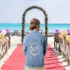 This White Bride typography and floral wreath wedding Denim Jacket is a delightful piece that has been designed specifically for soon-to-be-married bride at her bridal shower or wedding day. A script font spells out the word "Bride" on the back of the jacket, adding a touch of elegance and femininity. Embracing the romantic essence of the occasion, there is also a heart-shaped illustration all encased within a beautiful wreath comprised of delicate, white flowers and leaves. This unique jacket serves as a sentimental and stylish accessory, perfect for the bride to wear on her special day and cherish as a timeless keepsake.