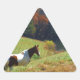 White & Brown horse, Autumn pond Triangle Sticker