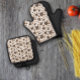 White brown natural flower Oven Mitt & Pot Holder Set .