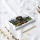 White memorial service guest book with gold foil text printed over a photo of your loved one with brush stroke edges as if the photo was painted onto the cover of the funeral service guestbook. Add your loved one's name in bold gold foil letters with in loving memory in a retro gold foil script. White and gold photo memorial guestbook personalised with name and years living. In loving memory photo guestbook for your loved one's funeral or memorial service personalised with photo and custom text.