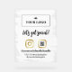 Acrylic let's get social sign with your logo and QR code printed on white printed paint hastily brushed over the acrylic surface with faux gold foil details your hashtags and your social media handle. Social media promotional sign with black fonts and white paint strokes printed on an acrylic background personalised with your QR code and social media handle so your clients and customers can easily access your social media as well as your business logo. White acrylic social media sign for your salon or small business for promotional purposes to help your customers and clients find you online by scanning your QR code.