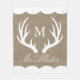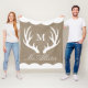 White Buck Antlers Burlap White Border Family Name Fleece Blanket