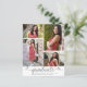 Be proud, rejoice and showcase this milestone of your favourite grad! Send out this girly, stunning, simple, modern, personalised 4 photo collage budget announcement invitation for an event to remember. A fun, playful visual of soft grey script handwriting and cute, playful hearts, along with her name, class year, and school and 4 photos of your choice overlay a white background. Personalise the custom text with your grad’s name, school and class year on the front. On the back, add your personal note, next school she’s attending, party information, etc. on the white background. Guaranteed to add stylish fun to their special occasion!