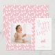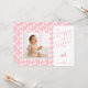 Celebrate Easter with this personalizable photo card designed by Destei. One side features a square spot for your photo that is framed with a thin white border and set against a light pink background patterned with white bunny silhouettes. The other side has a white background with “Happy Easter!” in playful tilted pink text, a lying-down pink bunny silhouette and space to add a name and year. The back of the card repeats the white bunny pattern over the pink background, creating a cohesive design perfect for spring greetings.