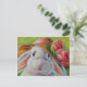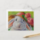 White Bunny Rabbit in Spring Bonnet Watercolor Art Postcard
