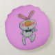 White Bunny Rosy Cheeks Thumbs Up Sign Pink Lines Round Cushion