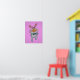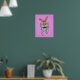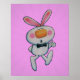 This economical artwork poster has a white bunny rabbit with a big orange nose giving a thumbs up sign wearing a black bow tie on a pink back ground with a faint sunburst pattern.