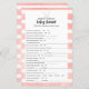 Enjoy playing What was Mummy Wearing? baby shower game. Cute, white bunny appears just above honoree's name on this light, baby girl pink and white stripe, watercolor background.