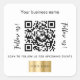 A stylish, classic white background. Personalise and add your business name, your own qr code to your weburl and business logo. White text. With the text x2: Follow us!