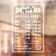 Simple custom business window decal with opening hours. Modern minimalist vinyl windows decal template with your company name, phone number, website and QR code. The adhesive film is attached to the inside of the store front. Further opening times window stickers and small business marketing items can be found in the corresponding pet business Zazzle collection from © y.BEE PAPERIE