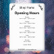 A simple and minimalist window cling with ornament to display opening hours of your shop or company on the shop window or the front door.