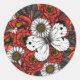 Seamless vector pattern with cabbage butterfly, roses and daisy flowers.