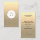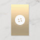 White Button Sewing, Tailor Business Card with a gold colored background.