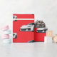 Wrapping paper with White coloured C8 Corvettes (2020 - Current). Red Background