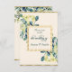 A beautiful ivory background with a gold frame over a frame of deep turquoise, and White Calla Lilies and Eucalyptus.