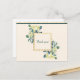 A beautiful ivory background with a gold frame over a frame of deep turquoise, and White Calla Lilies and Eucalyptus.