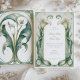 The Classic Calla Lily Elegance Wedding Invitation Set is the epitome of sophistication and timeless style. The front of the invitation showcases a pair of pristine white calla lilies set against a background of soft art nouveau swirls in sage and seafoam green. A border of gentle cream frames the design, inviting the eye to the central floral display. The reverse side carries the same colour theme and artistic flair, providing a harmonious backdrop for your personalised monogram. Rendered in a palette of cream, sage, seafoam, and the purest white, this invitation suite is an ideal choice for couples who desire a wedding theme that's both classic and serene.