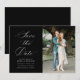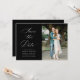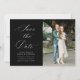 White calligraphy black wedding save the date card
