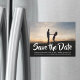 Announce the joyful news of your engagement and upcoming wedding with unique custom photo save the date magnets. The picture and all wording on this template are simple to personalise, including script overlay which can be changed to "Save Our Date." The magnetic back makes them easy for friends and family to display. (IMAGE PLACEMENT TIP: An easy way to centre a photo exactly how you want is to crop it before uploading to the Zazzle website.) The black and white design features one picture of the engaged couple, modern minimalist typography, and trendy handwritten script calligraphy. This stylish magnetic invitation makes an elegant announcement for your upcoming special day celebration. Congratulations to the bride and groom! Example photo is by Frank Mckenna (source: Unsplash).