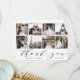 This elegant thank you card feature 8 photos with "thank you" in calligraphy script along with couple names and wedding date.