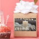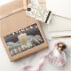 Beautiful white candle, ornaments and blanket throw on the front of this rectangular sticker features Merry Christmas in chic lettering.