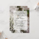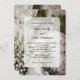 This wedding invitation features a beautiful photo of miniature white carnations and baby's breath as the background. A white transparent box in the centre features customisable text for your wedding invitation.