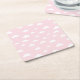 White Cartoon Clouds on Pink Background Pattern Square Paper Coaster