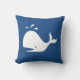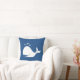 Designed by Sandy Closs Personalise with name to give a one of a kid gift part of the ocean themed decor white whale on blue pillow on one side and white strips OF WHALES on back.
