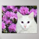 White cat with purplish lavenderish coloured azaleas. Cat's blue eyes retinted to match the azaleas photo poster. Sized for 14x11