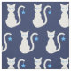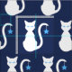 A silhouette cartoon of a white cat with light blue eyes against navy (the background colour can be changed). A blue star hangs from the cat's tail.