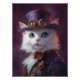 A beautiful illustration featuring a white cat dressed in a steampunk-inspired outfit including a top hat and goggles, exuding charm and creativity.