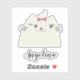 Cute, girly, kawaii white kitten with pink bow and name sticker.