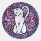 White Cat Mauve Daisies Classic Round Sticker