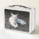 This is a standard metal lunchbox that appears to work just fine. We designed this box ourselves with an uploaded photo and custom text on the front and back. It looks absolutely beautiful except the front of the lunchbox is not centered like it shows in the photo. The print borders don't align with the inset flat part of the box where the preview photo online showed it perfectly centered in there. The back looks nice and centered though.
