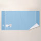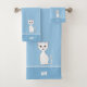 White cat and monogram on light blue Bath Towel Set. Cat image only on one corner. Elegant simple design for singles and couples!
