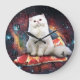 White cat on the pizza large clock