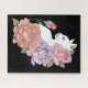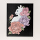 White Cat Peach Lavender Pink Roses Jigsaw Puzzle