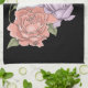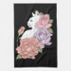 White Cat Peach Lavender Pink Roses Tea Towel