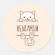 White Cat Peeking behind Custom Name Classic Round Sticker