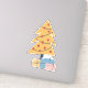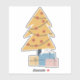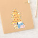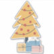 A cute white cat is cosy behind some colourful yellow blue and red presents under a yellow and red Christmas tree. A fun graphic design for cat lovers, Christmas, holiday festive season, giving and receiving gifts, joy and cheer.
