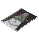 Cat, White with Butterfly bell jar, on black by FabFunky. Features a fabulous white cat with birds, greenery, and butterflies atop its head. | 191532D