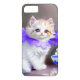 iPhone Case featuring a gorgeous white kitten! A fluffy kitten wears a purple flower collar. A blue bowl of white and purple flowers sits to the right. A marvellous gift for cat lovers and Victorian art enthusiasts!
