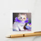 White Cat with Purple Flower Collar Painting Enclosure Card