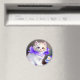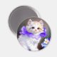 Magnet featuring a gorgeous white kitten! A fluffy kitten wears a purple flower collar. A blue bowl of white and purple flowers sits to the right. A marvellous gift for cat lovers and Victorian art enthusiasts!