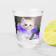 White Cat with Purple Flower Collar Painting Shot Glass