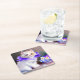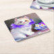 White Cat with Purple Flower Collar Painting Square Paper Coaster