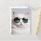 White cat with sunglasses, cool feline, lovely pet postcard