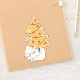A cute white cat is all wrapped up in red and yellow Christmas tree lights under a festive yellow and red Christmas tree. A fun graphic design for cat lovers with a pet that loves to help with Christmas tree decorating, festive holiday season, Christmas trees, ornaments.