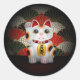 White Ceramic Maneki Neko Classic Round Sticker