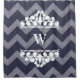 Trendy white chalk look chevrons background with custom accent colour. Foreground features white chunky scrolls and swirls top and bottom frames with personalised monogram letter.